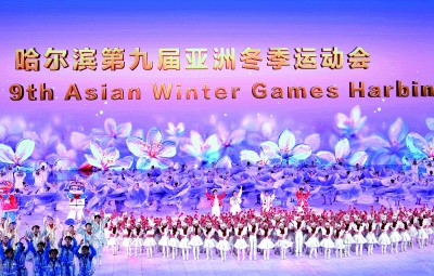 本屆亞冬會的主題歌《點亮亞洲》響起,歌曲寓意著點亮冰雪運動的澎湃浪潮之光,點亮繁榮發展的文明互鑒之光,點亮“亞洲命運共同體”的光明前景之光。
