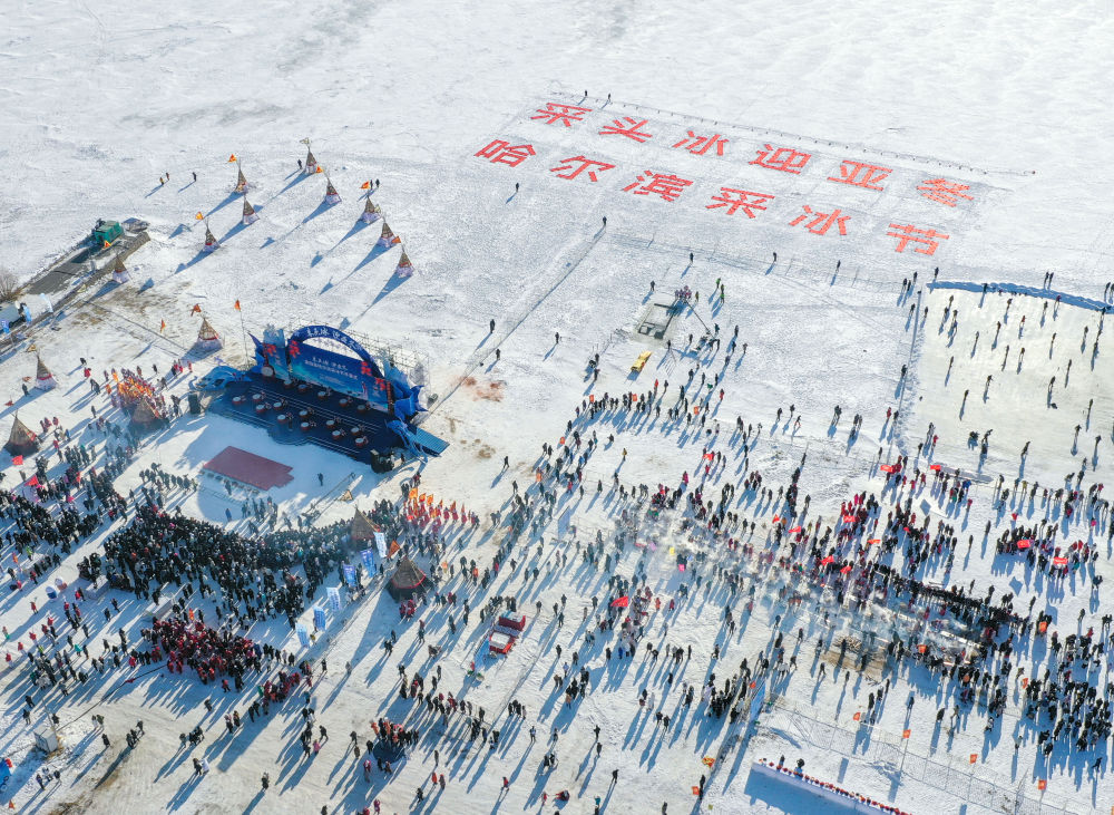 2023年12月7日拍攝的第四屆哈爾濱采冰節(jié)活動現(xiàn)場。