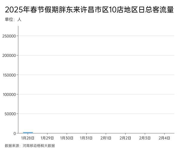 河南移動梧桐大數據顯示,2月2日至4日,胖東來許昌市區10店地區日均總客流量為假期前五天的3倍多。