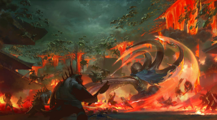這是影片中陳塘關(guān)大戰(zhàn)的前期概念圖。新華社發(fā)