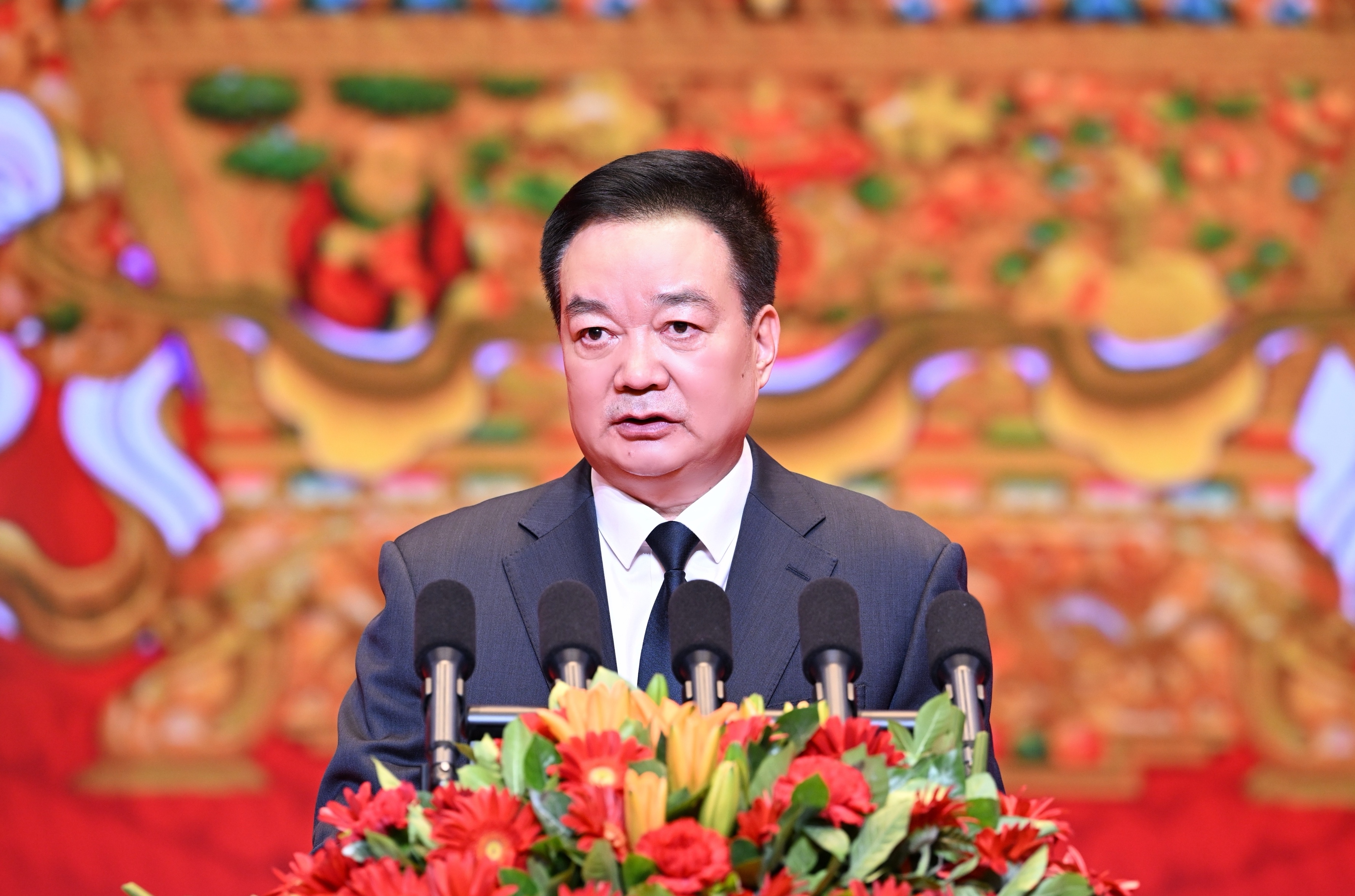 近日,西藏自治區各族各界喜迎2025年藏歷木蛇新年茶話會在拉薩舉行。自治區黨委書記、西藏軍區黨委第一書記王君正出席并致辭。記者 旦增西旦 攝