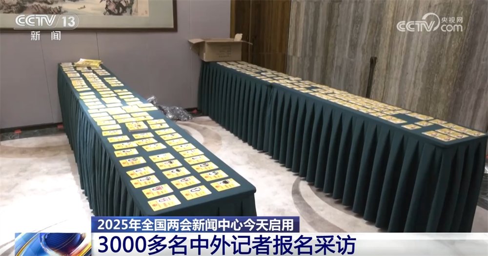 與往年相同,今年全國兩會新聞中心設置了多個功能區,其中,新聞發布廳和采訪室等已經布置完畢。