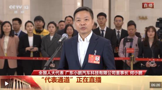今天(3月8日),十四屆全國(guó)人大三次會(huì)議第二場(chǎng)“代表通道”在人民大會(huì)堂舉行,全國(guó)人大代表、廣東小鵬汽車科技有限公司董事長(zhǎng)何小鵬接受記者采訪。