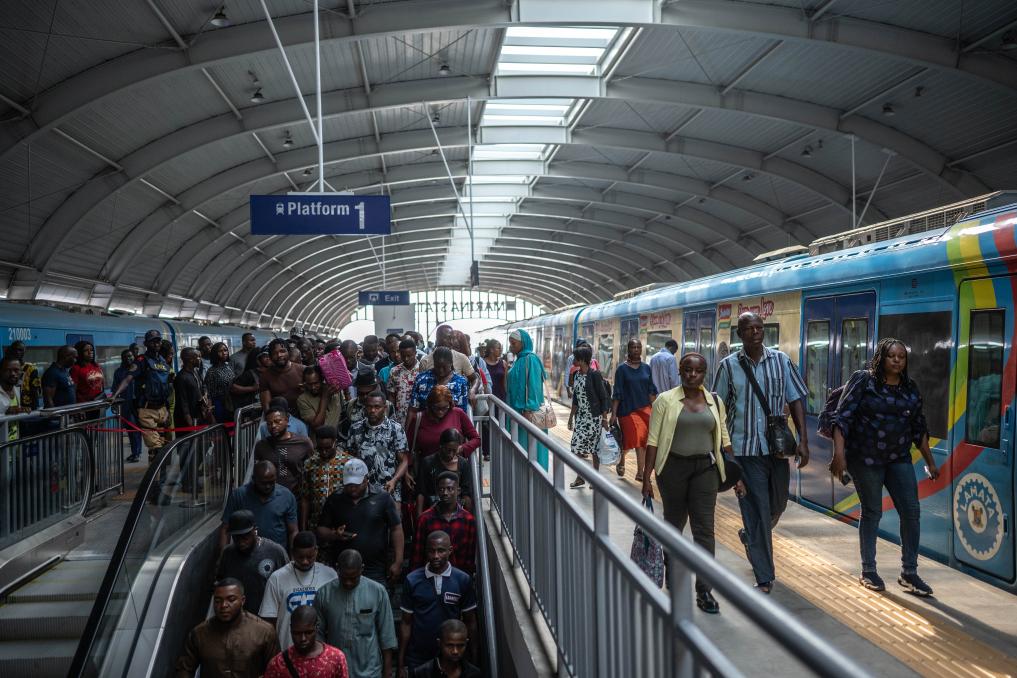 2024年12月2日,在尼日利亞拉各斯,乘客走在輕軌藍(lán)線的站臺(tái)上。拉各斯輕軌藍(lán)線是西非地區(qū)首條由中國企業(yè)自主設(shè)計(jì)、建造、施工、運(yùn)營的電氣化城市軌道交通項(xiàng)目。新華社記者 王冠森 攝
