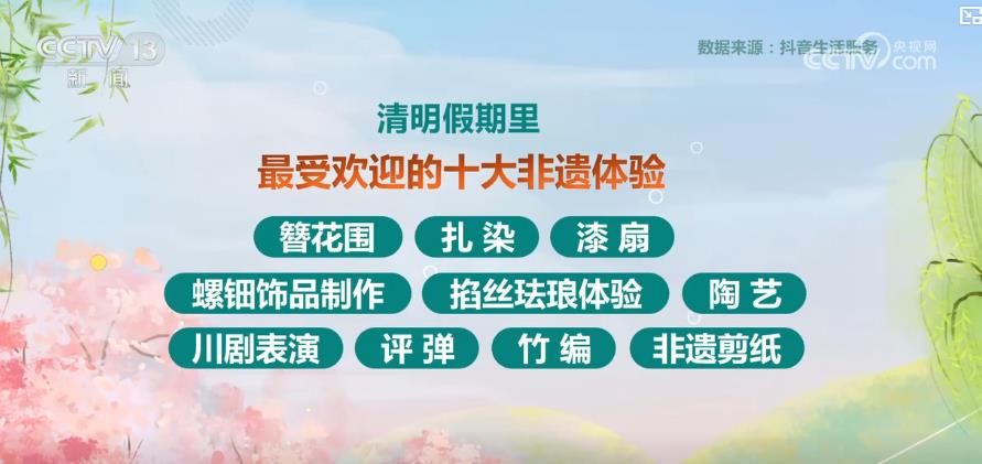 這個清明假期,體驗傳統的非遺手作成為多數老百姓假日出游的新選擇。清明假期里,最受歡迎的十大非遺體驗有簪花圍、扎染、漆扇、螺鈿飾品制作、掐絲琺瑯體驗等等。