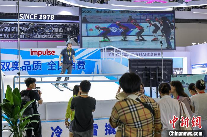 4月11日,第五屆中國國際消費品博覽會即將開展,企業推出具有AI功能的滑雪模擬機。中新社記者 駱云飛 攝