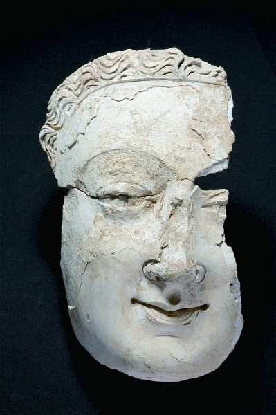 新疆喀什莫爾寺遺址出土的石膏大佛臉