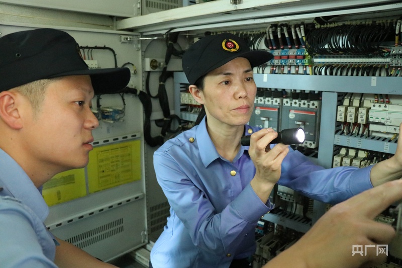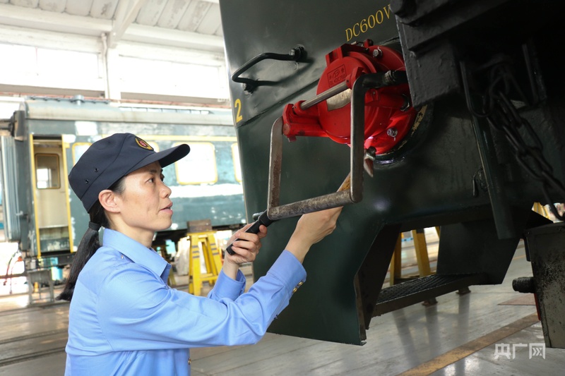 吳園梅和徒弟正在檢修車輛(央廣網記者 劉培俊 攝)