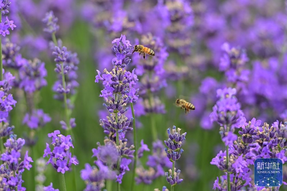 這是在新疆伊犁哈薩克自治州霍城縣解憂公主薰衣草農場拍攝的薰衣草花田(6月14日攝)。