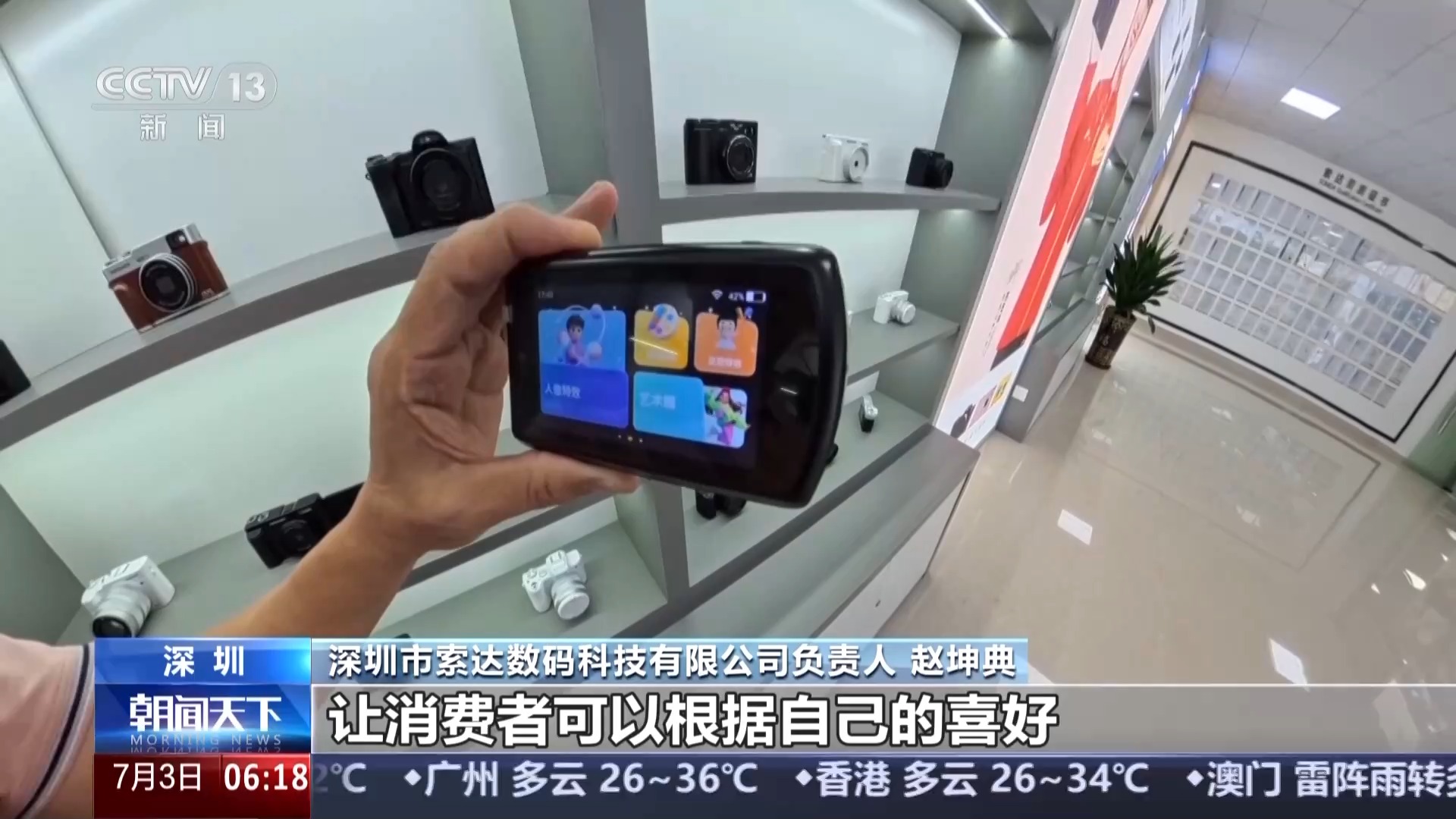 深圳市索達數碼科技有限公司負責人 趙坤典:傳統相機強調的是光學變焦,還有畫質。我們現在引進AI的功能,讓消費者可以根據自己的喜好做出各種各樣的創意編輯。找到一條彎道超車的路子。