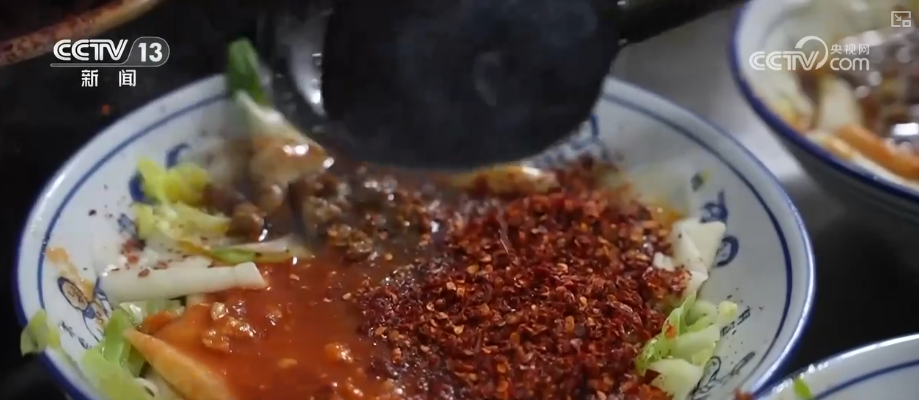 說到面食,繞不過陜西著名的 面。這種面的特點是寬厚筋道,下鍋煮熟以后撈出,要撒上蔥姜蒜和辣椒面,再潑上一勺熱油。