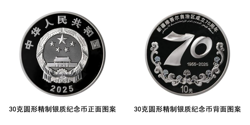 記者9月16日從中國人民銀行獲悉,中國人民銀行定于9月19日發行新疆維吾爾自治區成立70周年金銀紀念幣一套。該套金銀紀念幣共2枚,其中金質紀念幣1枚,銀質紀念幣1枚,均為中華人民共和國法定貨幣。