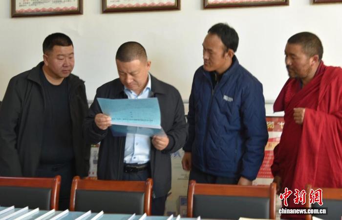圖為甘南州委常委、統戰部部長王力(左二)調研寺廟管理工作。甘南州委統戰部供圖