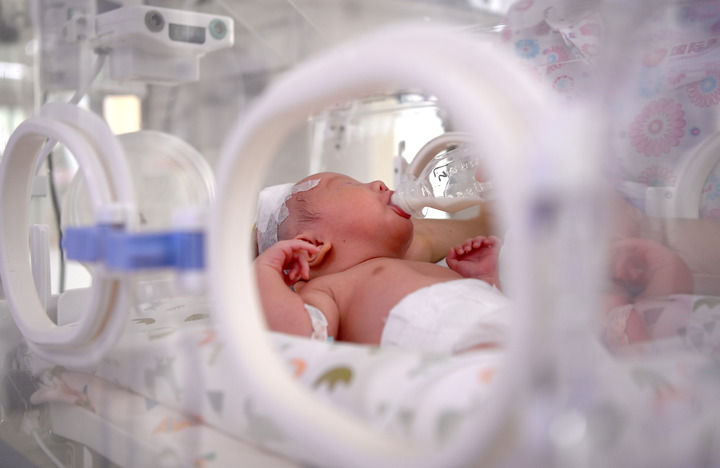 2024年6月1日,在西安國際醫學中心醫院新生兒科病房,護士為新生兒喂奶。新華社記者 劉瀟 攝