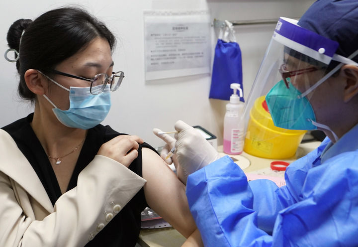 一名女士在復旦大學附屬婦產科醫院接種九價HPV疫苗(2022年11月11日攝)。新華社記者 劉穎 攝