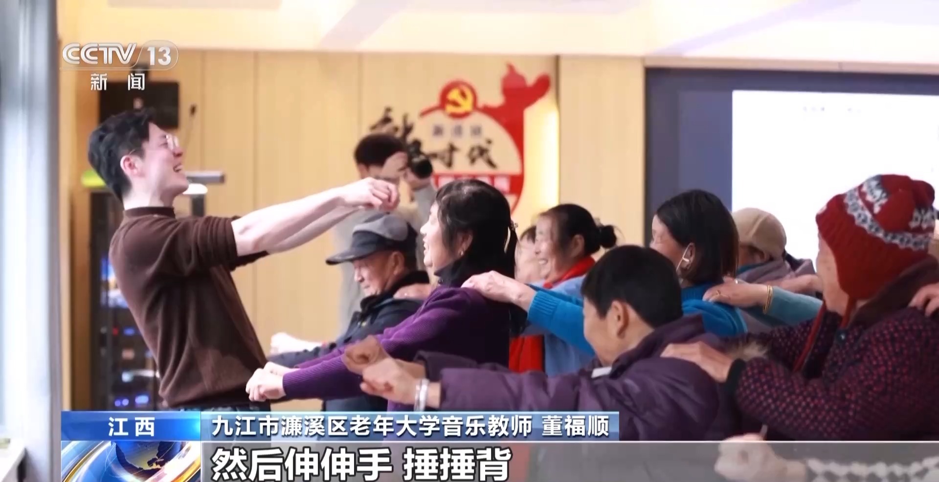九江市濂溪區老年大學音樂教師 董福順:音樂老師的狀態一掉下來,老年人他就困了,10分鐘就困。但是如果我要用我的這種感情,不停地去帶,你會發現他們會越來越開心。我想要的就是這種效果,你一定要100%、200%甚至300%的這種熱情帶動,他們可能才有40%到60%、60%到80%的這種回饋。