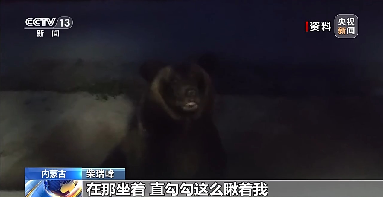柴瑞峰:我就拿手機往后面一照,突然看見一只黑熊,它離我就四五米遠的距離上,在那坐著,直勾勾這么瞅著我,這個手機的亮光,照在這個熊的眼睛上,它冒那個光。當時心里就特別特別害怕,跟前有一棵樹,我順著那棵樹爬上去了。