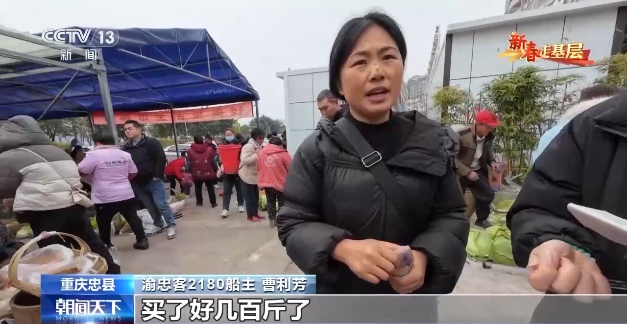 “渝忠客2180”船主 曹利芳:買了好多了,幫著買了好幾百斤了,好多網友他們想要吃這邊的農家菜,所以叫我們幫他買了然后寄過去。
