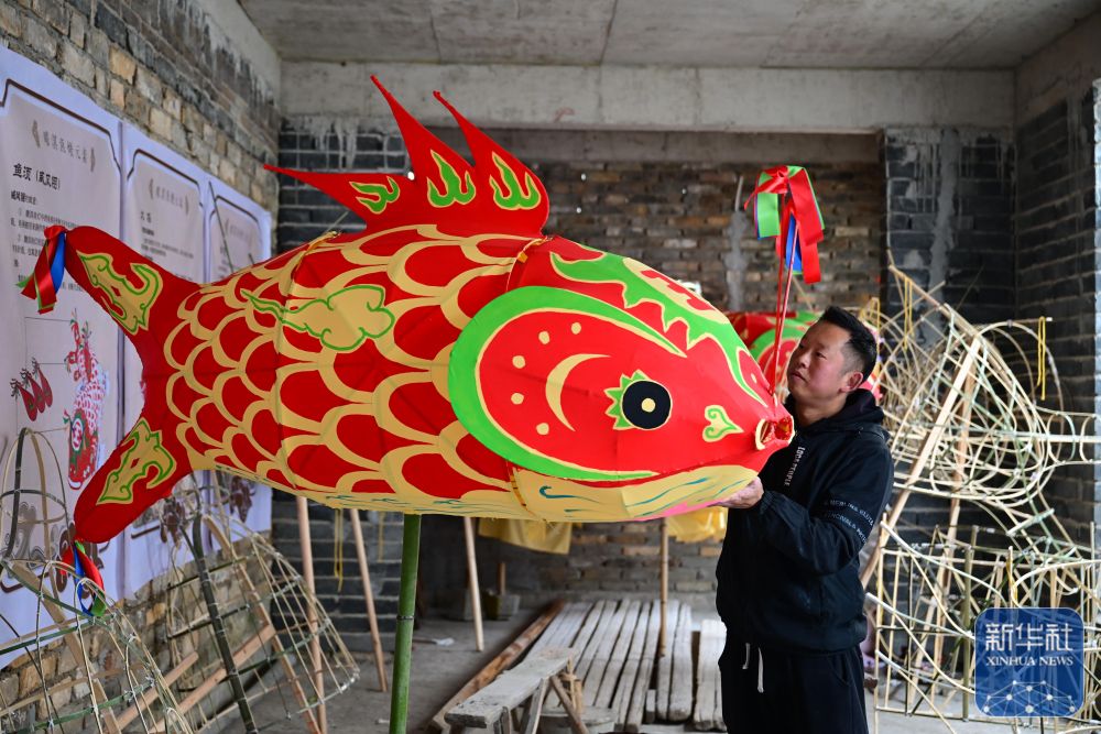 1月29日,瞻淇村的縣級非遺項目瞻淇魚燈代表性傳承人汪卓葷在制作魚燈。