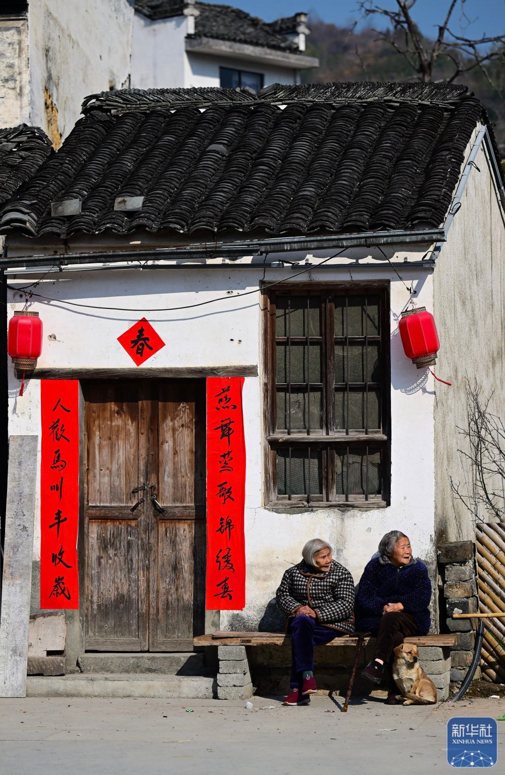 2月8日,村民在瞻淇村曬太陽。