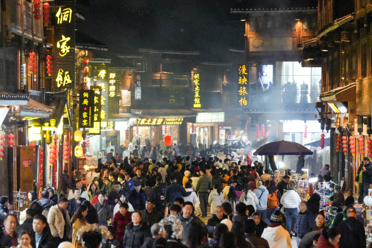 2026年2月19日,游客在貴州省黎平縣肇興侗寨游玩。新華社發(龍建睿攝)
