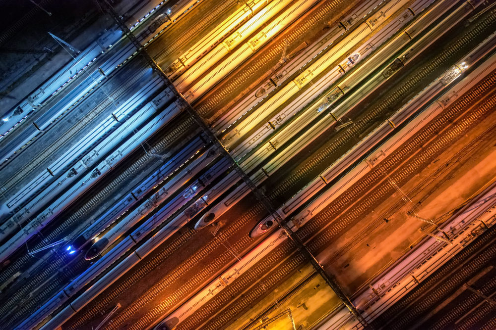 動車組列車停靠在貴陽北動車所內(2023年1月6日攝,無人機照片)?!笆奈濉逼陂g,我國建成世界規模最大、先進發達的高速鐵路網。