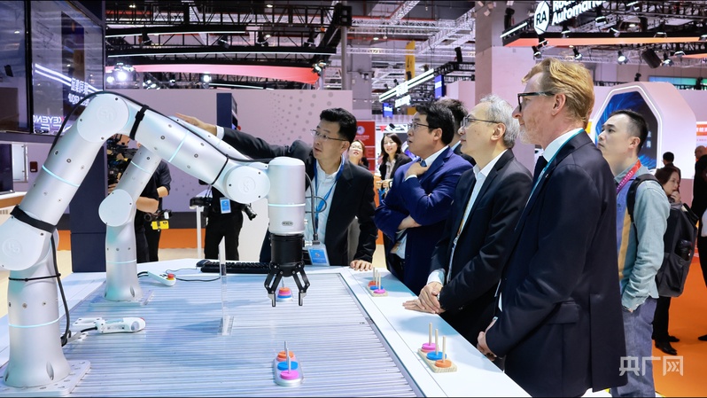 第八屆進博會上,科技企業展商在向觀眾介紹產品(央廣網記者 何智康 攝)