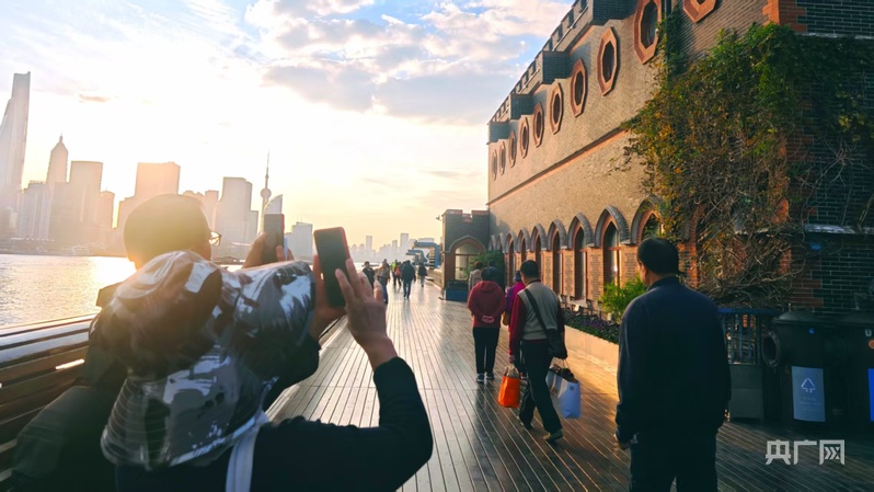 市民游客漫步楊浦濱江岸線,不時駐足“打卡”(央廣網記者 馮麗 攝)