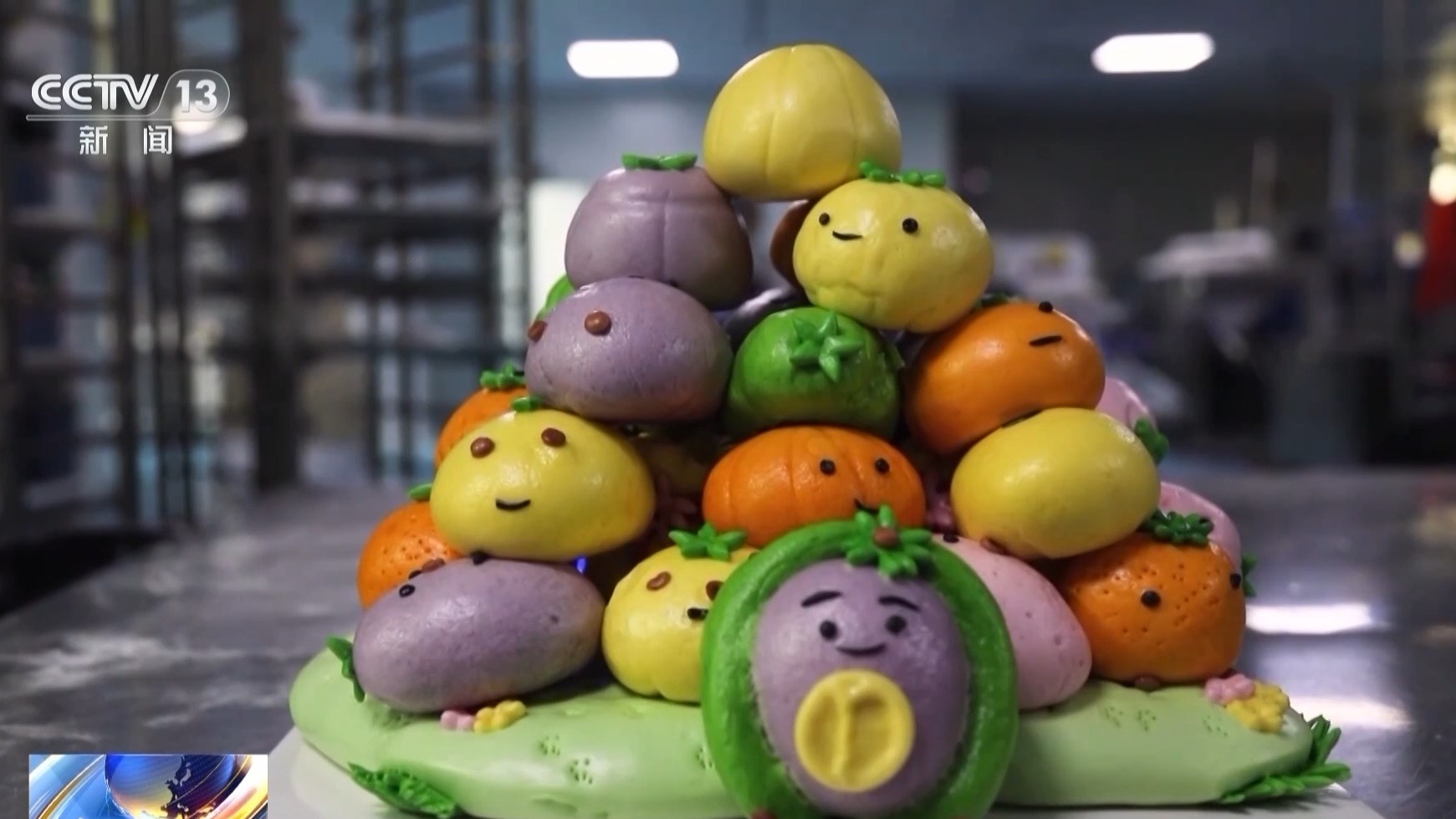 孩子們發揮想象,用各色面團捏制成燕子、南瓜、柿子等卡通造型,經過組裝與蒸制,一個“卡通餑餑塔”很快出鍋。