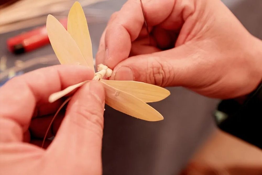 國家級非遺新繁棕編省級代表性傳承人羅志勇正在制作棕編作品