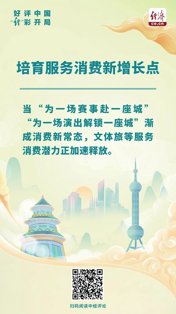“十五五”規劃綱要強調,“加快培育服務消費新增長點”,為進一步釋放消費潛能、塑造發展新優勢指明方向。國務院辦公廳近期印發的《加快培育服務消費新增長點工作方案》,將演出服務、體育賽事服務、情緒式體驗式服務列為重點培育領域,也是看中了服務消費既能引導居民生活品質升級,又能高效撬動供需循環的雙重價值。