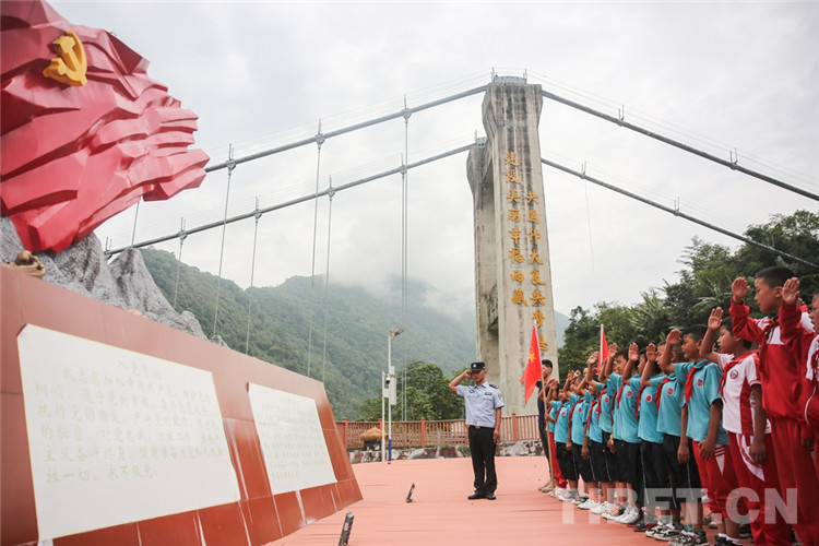 圖為背崩邊境派出所民警在解放大橋愛國強邊教育基地為學生講解“老墨脫精神”