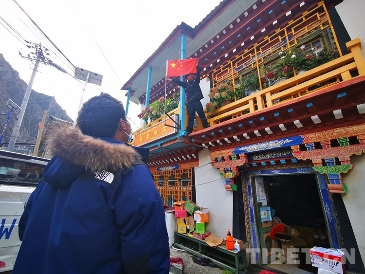 “老奶奶,我?guī)驮蹅兗野褔鞉斓介T口最醒目的地方……”說著,林芝邊境管理支隊(duì)金東邊境派出所民警楊子拿著紅旗走向了卓瑪拉姆老人家門口,在老人家門口插上了耀眼的五星紅旗。