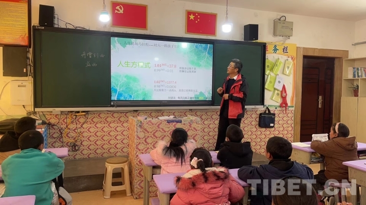圖為2022年4月10日,韓軍峰為革吉縣完全小學畢業班的同學們上主題班會