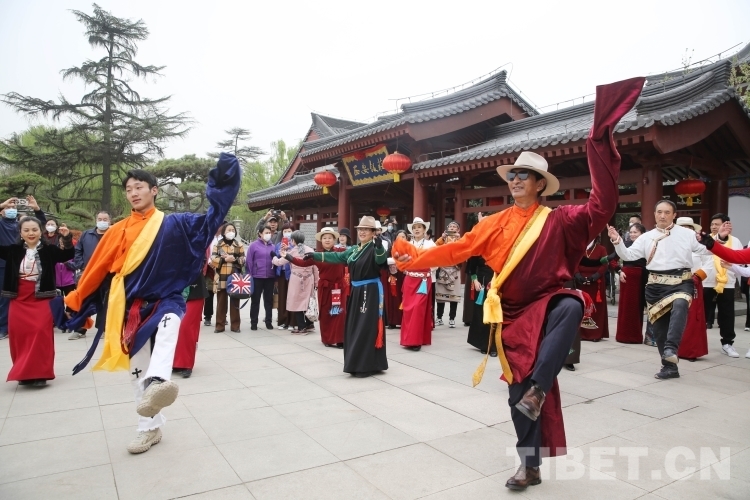 在大唐西市、興慶宮公園等地,沙多等多位藏舞推廣傳承人與西安當地鍋莊舞團隊交流展演,現場氣氛熱烈。