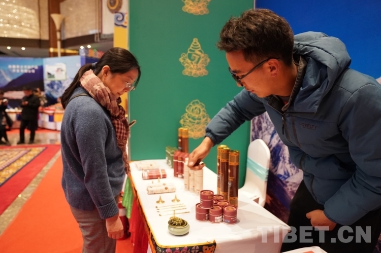 圖為特色展區處工作人員正向游客介紹藏香 攝影:王淑