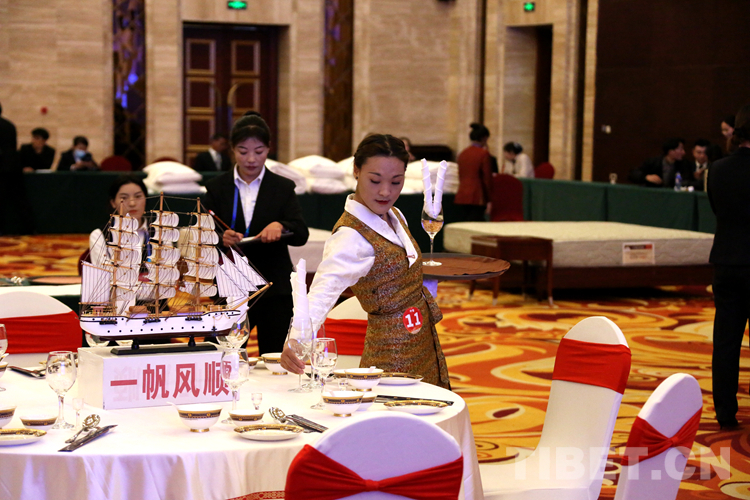 中國西藏網(wǎng)訊 5月11日,由西藏自治區(qū)旅游發(fā)展廳、西藏自治區(qū)總工會、共青團西藏自治區(qū)委員會、西藏自治區(qū)婦女聯(lián)合會主辦,西藏旅游飯店業(yè)協(xié)會承辦的2023年西藏自治區(qū)星級飯店從業(yè)人員服務(wù)技能競賽在拉薩開賽。45名選手圍繞中餐宴會擺臺、西餐宴會擺臺、中式鋪床及夜床服務(wù)、前廳服務(wù)4個項目同臺競技。