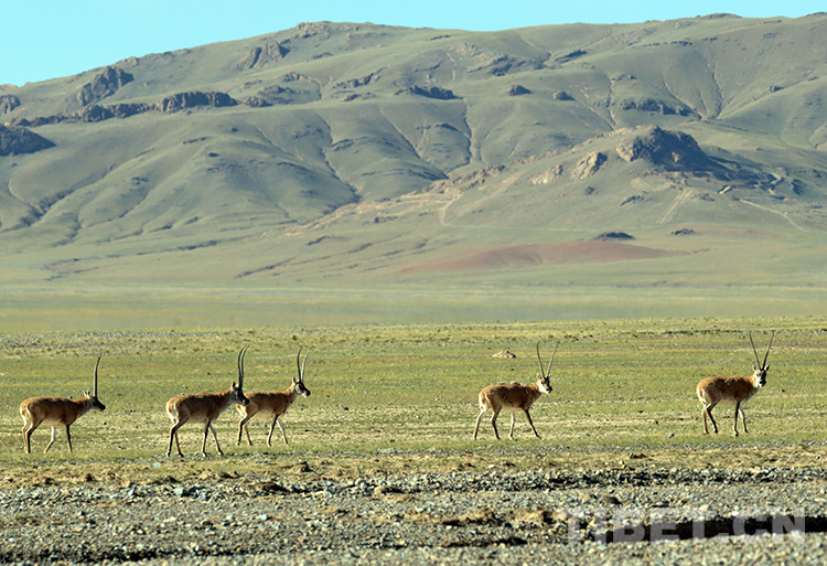 在羌塘國家級自然保護區悠閑漫步的國家一級保護動物藏羚羊(唐召明2019年9月20日攝)