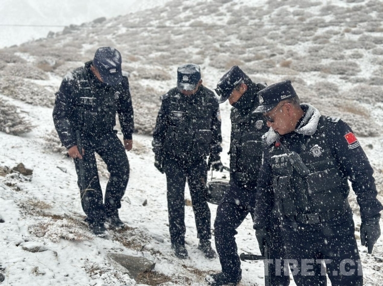 圖為斜爾瓦執勤點民警冒著風雪開展巡邏踏查 攝影:格熱