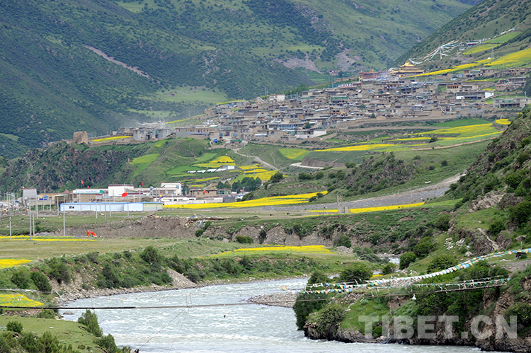 羊秀白嘎風景區的美麗景觀?!疤K毗古遺址群落”就廣泛分布在這里。前面流淌的是杰曲河水(唐召明2014年7月9日攝)
