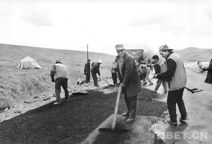 圖為1974年青藏公路改建工程。(西藏自治區交通運輸廳供圖)