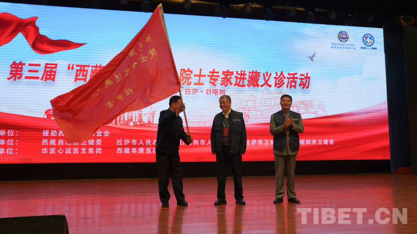 圖為第三屆“西藏人人健康”院士專家進藏義診活動啟動儀式授旗現場 攝影:王淑