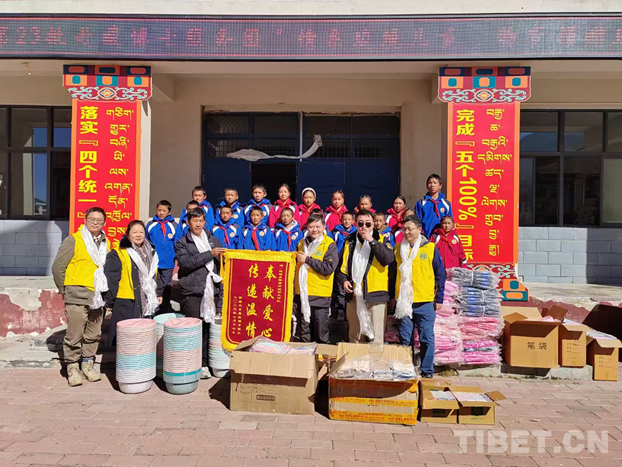 2023年11月,作為北京市新聯(lián)會(huì)理事、石景山區(qū)新聯(lián)會(huì)會(huì)長(zhǎng)、朵云文化藝術(shù)服務(wù)中心主任,我第二次到西藏,隨公益組織雙閃車(chē)隊(duì)、援藏博士服務(wù)團(tuán)一起到日喀則市定日縣絨轄鄉(xiāng)完小,為這所邊境小學(xué)捐贈(zèng)了價(jià)值1000元的文具。