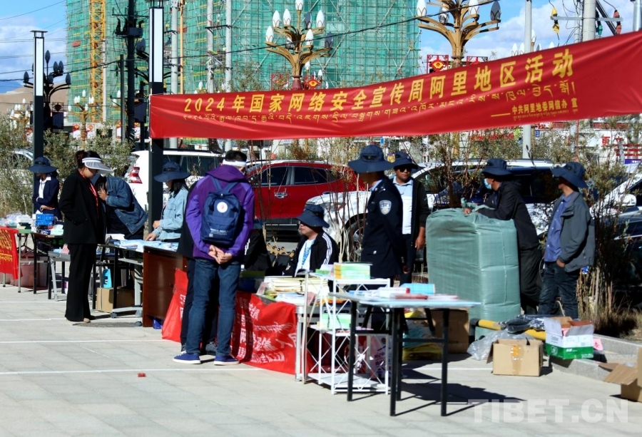 圖為當(dāng)?shù)馗刹俊⑷罕姷葏⒂^2024年國家網(wǎng)絡(luò)安全宣傳周阿里地區(qū)活動集中宣傳活動 攝影:王佳豪