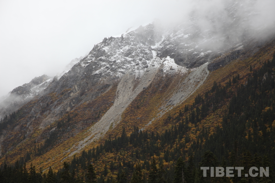 秋日是靜謐的,是金燦燦的,也是火紅的。在西藏自治區昌都市八宿縣看見的秋色,不僅有山頂的白雪,山間黃綠相間的林海,還有半山腰若隱若現的云霧。