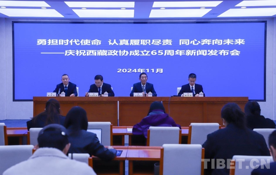 中國西藏網訊 11月18日,慶祝西藏政協成立65周年新聞發布會在拉薩舉行。新聞發言人從堅持黨的領導,把牢方向強根基;強化理論武裝,凝心鑄魂固根本;突出思想引領,團結奮進聚共識;服務中心大局,協商議政顯擔當;聚焦民之關切,履職盡責踐初心;著眼自身建設,守正創新提能力六個方面介紹西藏政協65年來的工作總體情況。