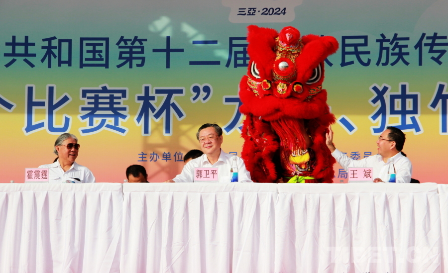 賽前,在龍舟巡游活動后,國家民委副主任郭衛平,海南省委常委、宣傳部部長王斌,香港代表團顧問、中國香港體育協會暨奧林匹克委員會會長霍震霆,香港代表團團長,香港文化體育及旅游局體育專員蔡健斌,國家民委文化宣傳司司長張謀,國家民委港澳臺辦公室主任魏國雄,海南省政府副秘書長國章成,國家民委文化宣傳司副司長張劍輝,國家民委港澳臺辦公室副主任趙靜,海南省民委副主任黎梁東,海南省旅文廳副廳長王忠云,海南省三亞市政府副市長張長豐為龍舟點睛、披紅,將比賽氛圍烘托得格外喜慶熱烈。