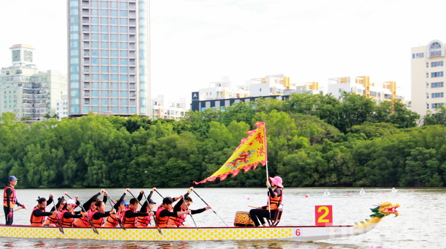 據了解,本屆運動會共有來自全國各地的12支男子組隊伍和8支女子組隊伍,以及男女混合組8支隊伍,共約700名運動員參賽。少數民族運動員近400名。在接下來的幾天中,大家將在三亞河切磋技藝、奮勇爭先,角逐龍舟項目共21個分項一等獎的歸屬。其中,香港隊的龍舟一亮相就贏得了現場觀眾的熱烈掌聲。大家用掌聲與歡呼聲歡迎首次參加運動會龍舟項目的香港隊。本屆運動會是香港首次派出代表團參賽。