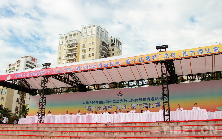 中國西藏網訊 11月23日,第十二屆全國少數民族傳統體育運動會(以下簡稱運動會)龍舟項目在海南省三亞市三亞河開賽。