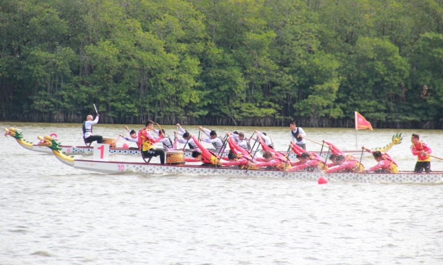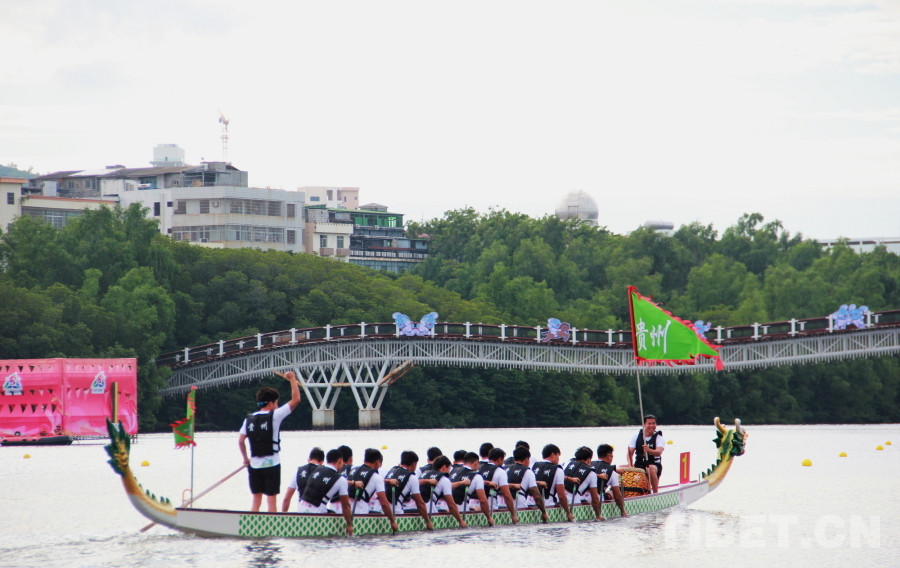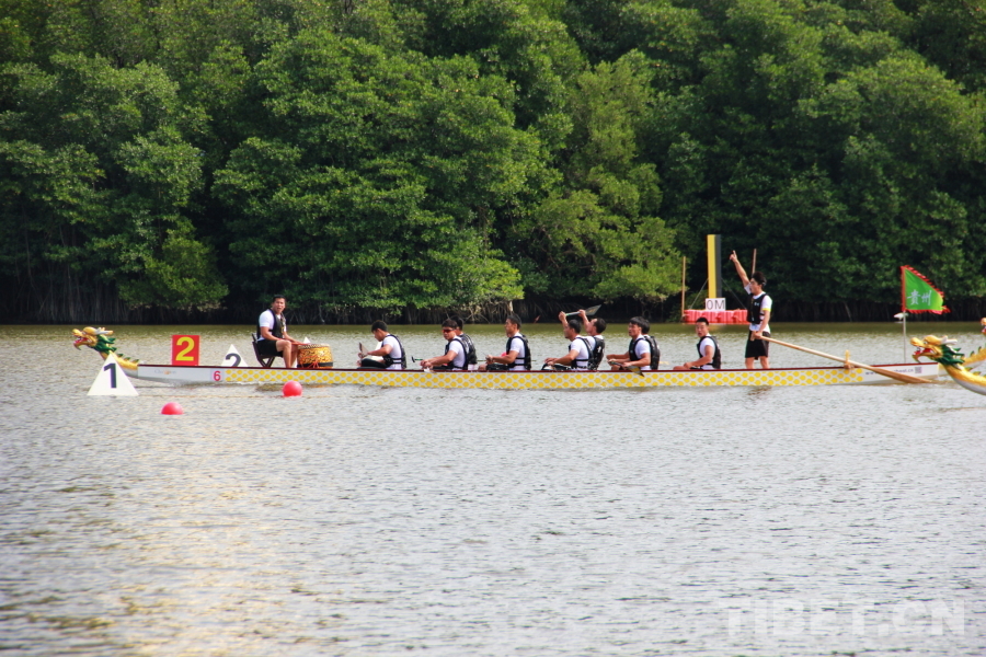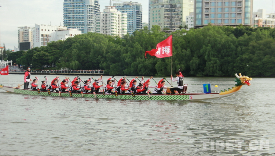 圖為第十二屆全國少數民族傳統體育運動會龍舟項目中的海南隊 攝影:劉莉